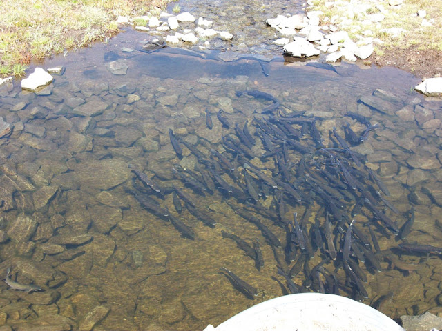Much has changed since my last report at Lake Davis. The large majority of the fish are done with the spawn with some remaining in the feeder creeks that have a good enough flow to them. There was a strong North wind Thursday through Saturday and fishing was slow. Water temps have come up a bit into the lower 50's and the blood midge have started to hatch, the size of them are big; #10.