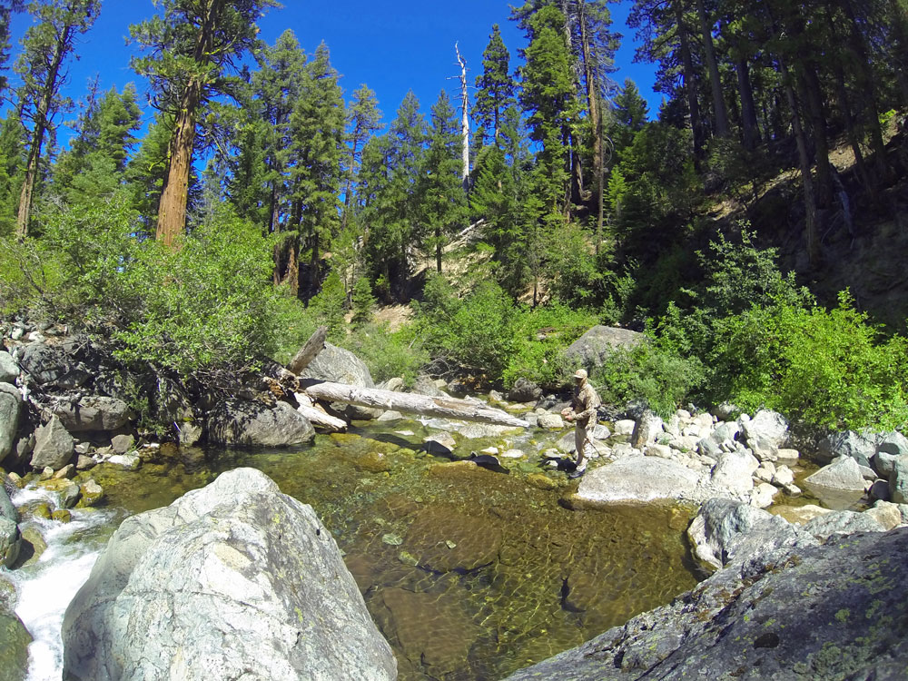 Concentrate your efforts from just upstream of Downieville down to the last bridge on Hwy 49 as your heading to Nevada City. Bigger water, a better October Caddis hatch, and more available sunshine are key points here.